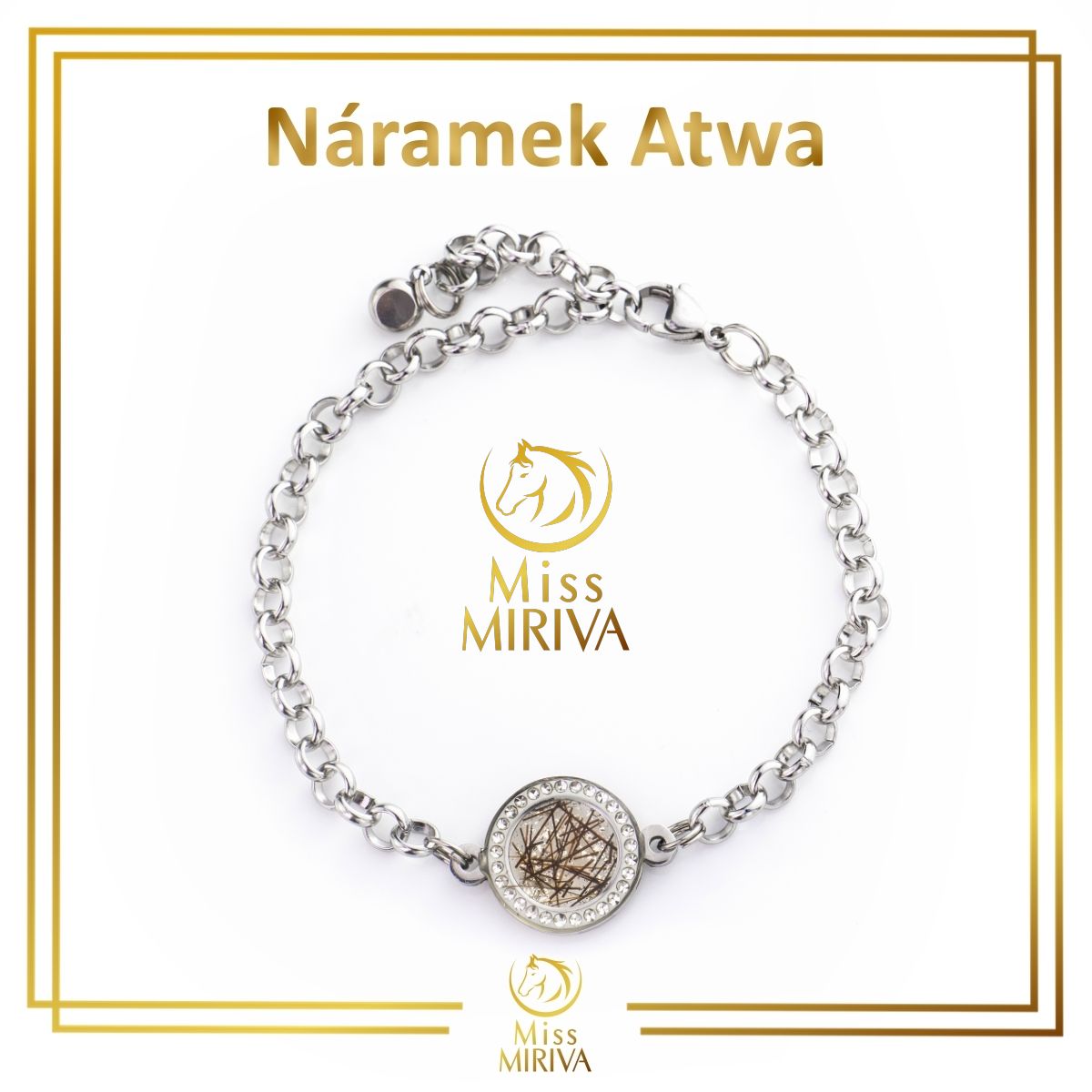 Medailonový náramek s řetízkem v kombinaci s křišťálovou pryskyřicí. Induviduální vzhled, vždy podle vašeho přání. Do medailonu lze zapracovat koňské žíně, hříva, žíně z kravičky, oslíka, srst z pejsků, kočiček, králíčků, pírka z papoušku, apod. Nově lze do medailonu zapracovat i dětské vlásky... Kdyby vás napadly další možnosti, neváhejte nás kontaktovat.