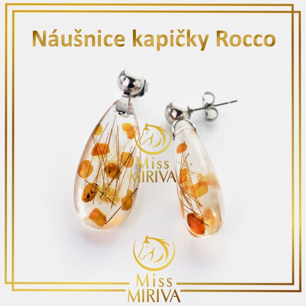 Ručně vyráběné naušnice z křišťálové pryskyřice v kombinaci s chirurgickou ocelí. Induviduální vzhled, vždy podle vašeho přání. Do prstenu lze zapracovat koňské žíně, hříva, žíně z kravičky, oslíka, srst z pejsků, kočiček, králíčků, pírka z papoušku, apod. Nově lze do korálku zapracovat i dětské vlásky... Kdyby vás napadly další možnosti, neváhejte nás kontaktovat.