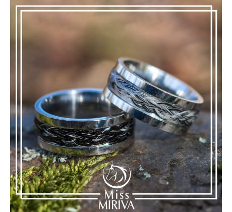Prsten z chirurgické oceli, široký hladký kroužek, včetně zápletu ze žíní